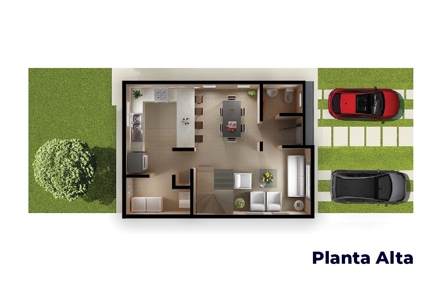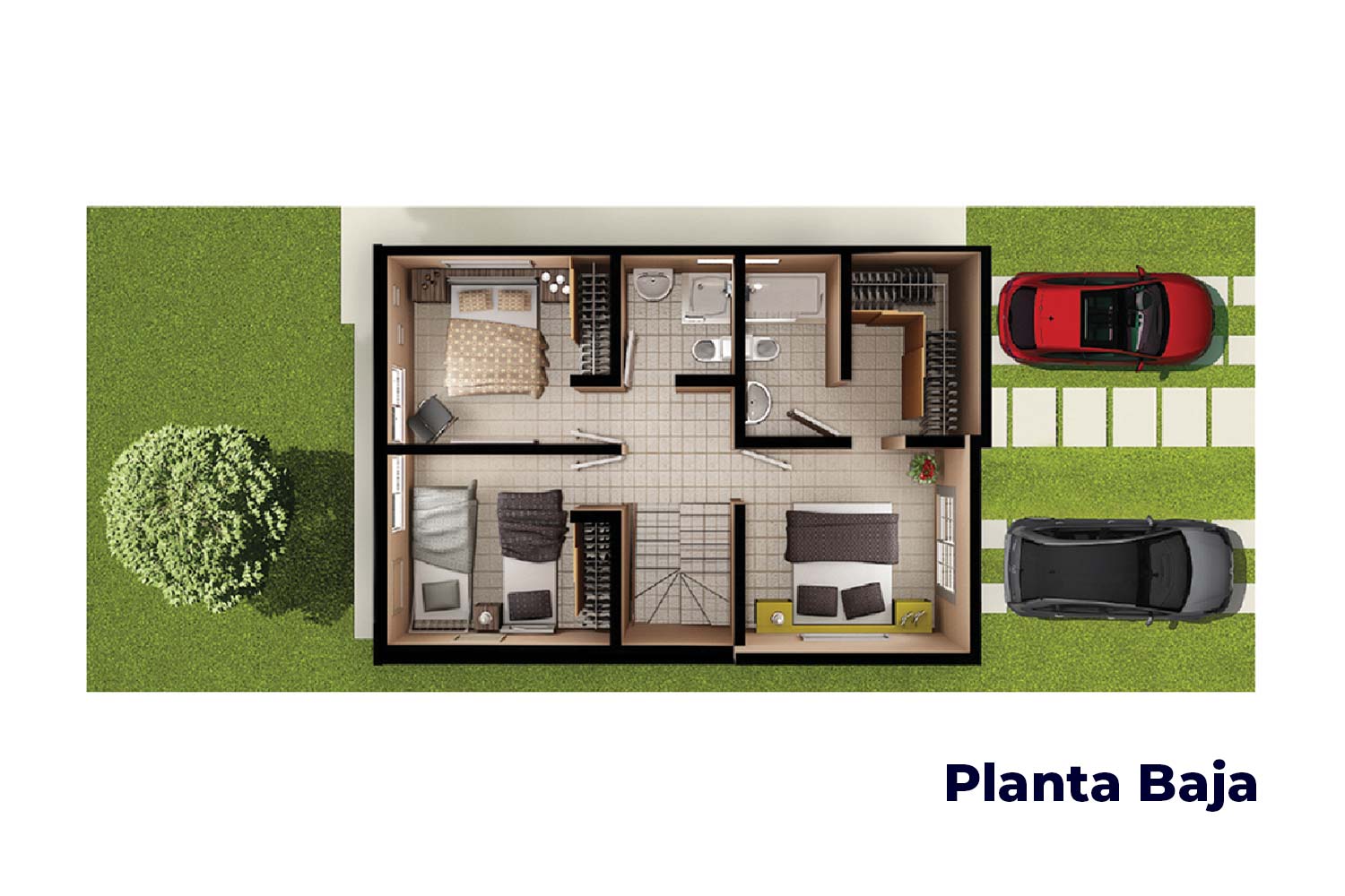 Casa de 3 recamaras (una en planta baja), 3 baños completos y 1 medio baño.